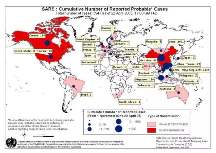 2002年、2003年的时候,在我国广东SARS首次爆发,在短短5个月之内传播到了全球27个国家和地区,造成了8000人感染,死亡病例接近800人,是本世纪初最严重的一次传染病。