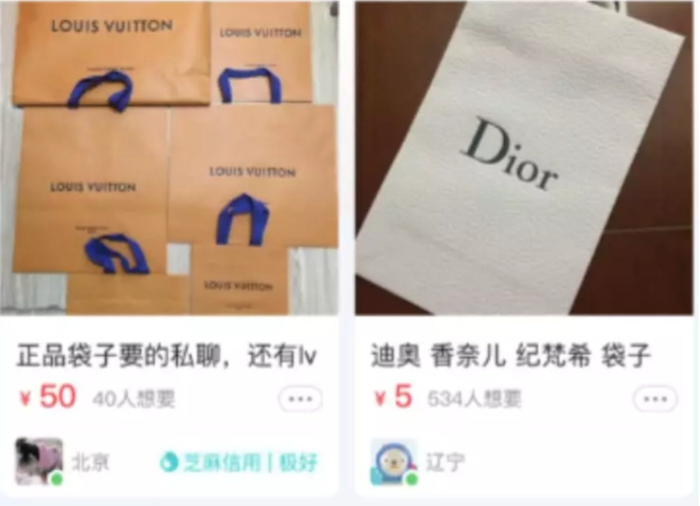 通过购买奢侈品牌、网红品牌的购物袋,无形地炫耀丰富的物质生活,其背后的“空虚”也难免让人唏嘘。“购物袋炫富”也因此成为了一门生意,不断满足着更多买家的虚荣心。