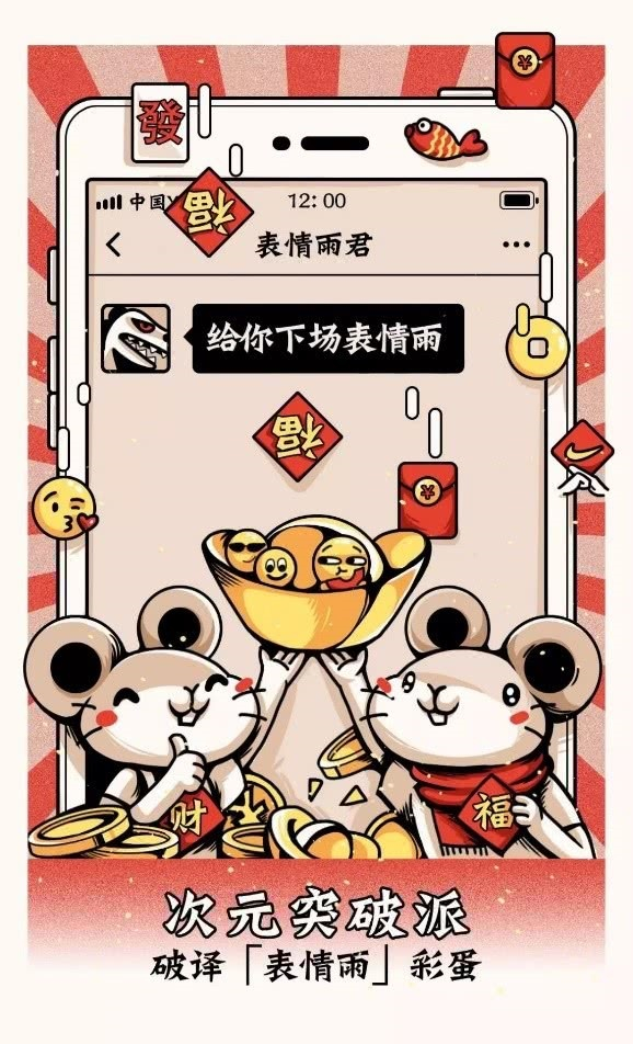 每年春节期间,微信团队都会设置一些关键词,成功触发后便会收获表情雨。据微信团队表示,2020鼠年表情雨的关键词有这些:新年快乐,新春快乐,鼠年快乐,鼠年大吉,鼠你幸福,五福临门,幸福美满,迎春接福,财源滚滚,恭喜发财,财运亨通,财源广进,招财进宝等等。用户在发送包含以上关键词的祝福语之后便会触发酷炫的表情雨。