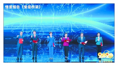 昨晚春晚播出半个多小时后,开播前临时调整增加的情景报告《爱是桥梁》与全国观众见面。