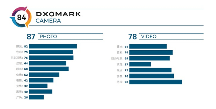 DXOMARK表示,红米Note 8 Pro在DXOMARK Camera测试中取得84分,在本排行榜中排名于后半部分,次于诸如摩托罗拉Moto One变焦版和三星Galaxy A50等其他平价机型,其得分与游戏机型黑鲨2相同。