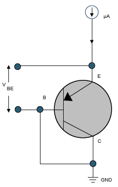IC 温度传感器取决于硅带隙的预测温度依赖性。如图 1和公式 1 所示,精密电流为内部正向偏置 P-N 结提供电源,从而产生对应于器件温度的基极-发射极电压变化。