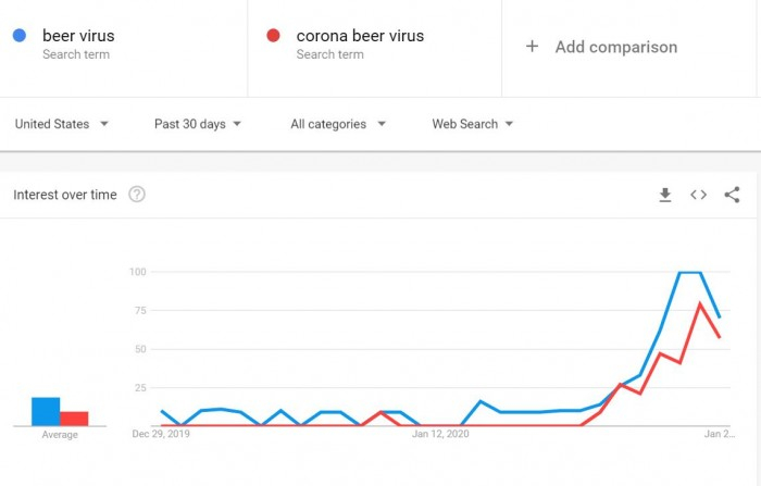 像“啤酒病毒(beer virus)”和“科罗娜啤酒病毒(cornoa beer virus)”等这样的搜索词最近出现激增。