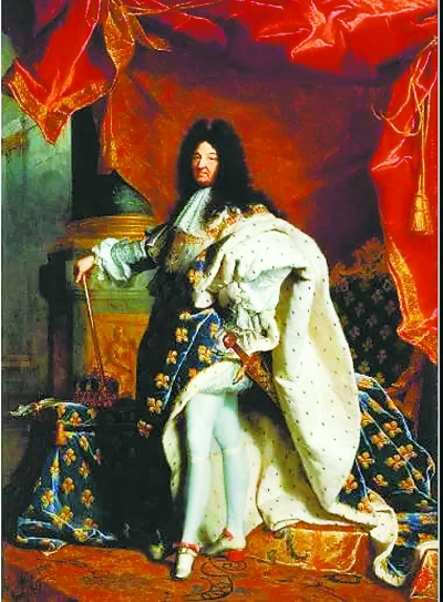 法国宫廷画家亚森特里戈作品《63岁时着加冕服的路易十四全身像》。