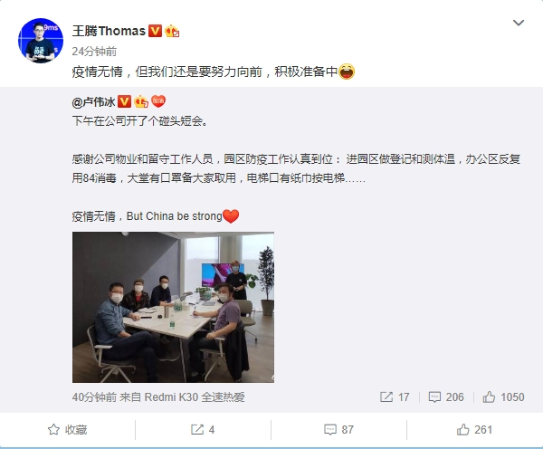 小米公司产品总监王腾表示,疫情无情,但我们要努力向前,积极准备中。
