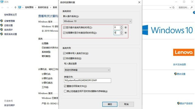 第一种方法在桌面找到“此电脑”点击右键,紧接着点击最下方的“属性”进入系统界面,在系统界面点击左上方的的“高级系统设置”进入到“系统属性”界面,在此界面下的“启动和故障恢复”项中点击“设置”,将“显示操作系统列表时间”和“在需要时显示恢复选项的时间”通通设置为0秒,之后点击确定。