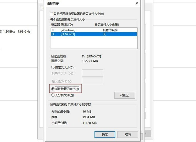 所以核心点也就是转换角色的问题,这个操作起来也非常简单,点击D盘同时在下方选择“系统管理的大小”随后点击“设置”“确定”,切记一定要重新启动后才会生效。
