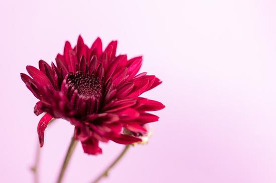 拍摄的时候,将纸片挡在花的后面,这样背景就变成了单纯的色彩。当然,别忘了找一种与花朵颜色差异较大的色彩,否则无法凸显出花朵的色彩和美感。