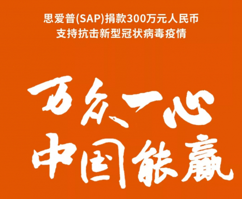 思爱普(SAP)捐款300万元人民币,支持抗击新型冠状病毒疫情