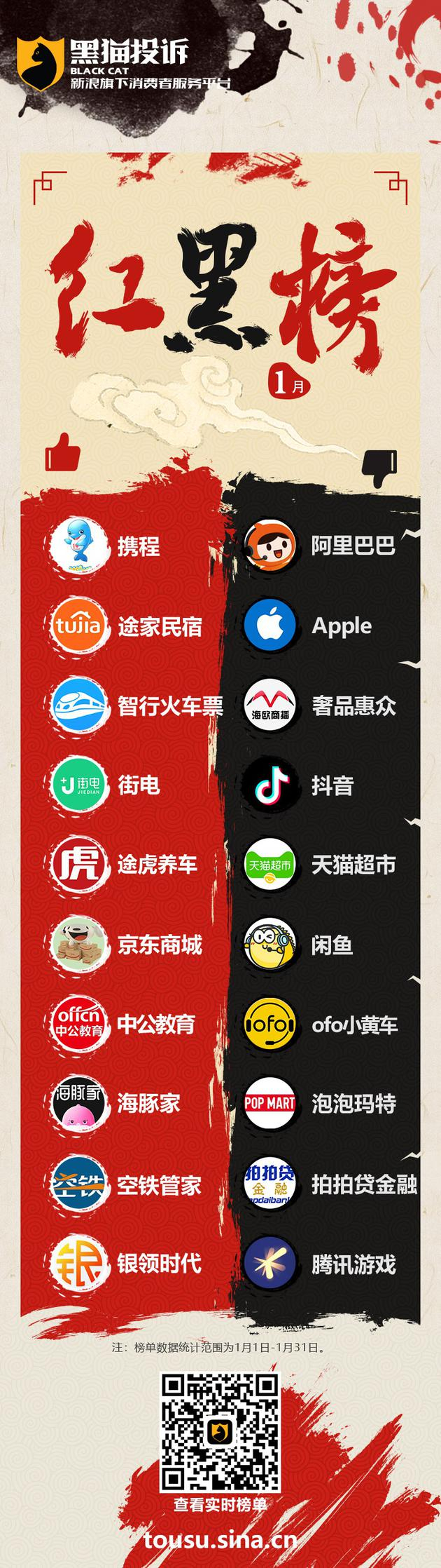 1月黑猫投诉企业红黑榜:途家民宿进入红榜前十
