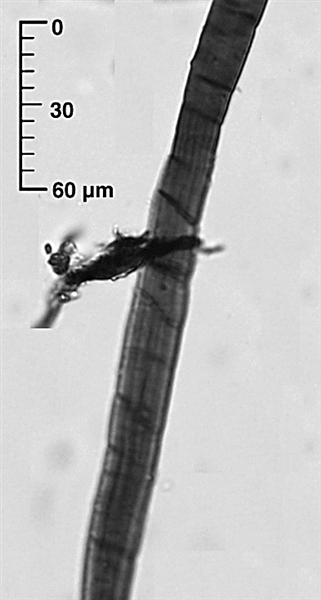 图6 唐代文书残片中的大麻纤维。