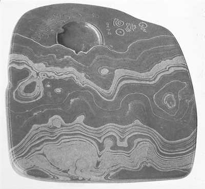 最后我来介绍一下好砚的标准。我个人以为可用“研润美端”四字加以概括。研,即砚台要有研墨功能;润,即吸水率要低,砚体润泽;美,即具有美丽的天然色泽与纹饰;端,就是要高端大气,有格调,有品位。