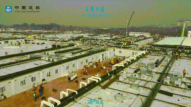 雷神山医院项目由中建三局独立承建,中建一局、中建二局、中建四局、中建五局、中建七局、中建八局、中建装饰、中建科工、中建安装、中建西部建设、中建科技等多个子企业按照集团统一部署火速驰援,1月26日开工,24小时不间断施工。