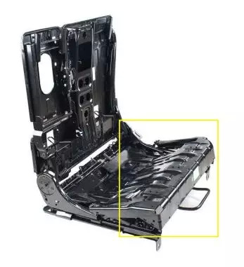 说到座椅硬,除了靠背之外,坐垫设计也有很多讲究。大家肯定有过这样的感受:当汽车受到撞击或者急刹车时,人会因为惯性往前冲,这时候座椅的前端支撑性如果不够,就好像要直接冲到地板下一样。为此汽车座椅会设计有防下潜装置,比如从下图后排座椅骨架图可以看到有一处明显的凸起。