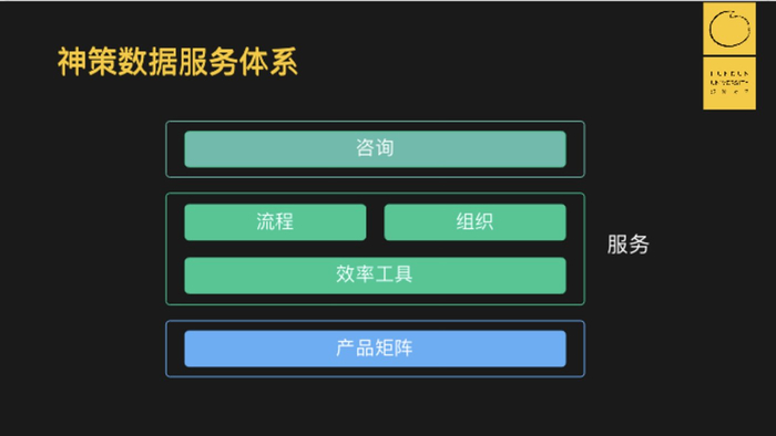 我将神策的整个服务体系总结为,产品矩阵、服务、咨询,这三个环节。