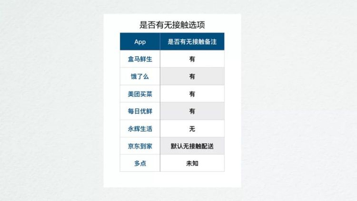点评:现在这个特殊时期,各app提供了无接触配送,比如用户可以选择让配送员放到特定位置,或者只敲门放门口等。
