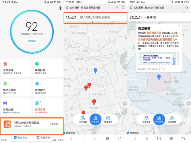 小米MIUI 11手机上线新功能 自带疫情雷达