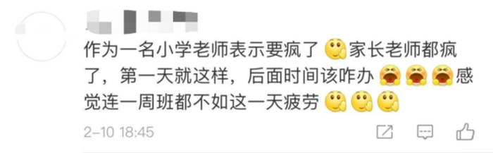 还有小学老师表示自己要疯了,第一天就这样后面还不知道咋办,感觉连上一周班都不如这一天疲劳。
