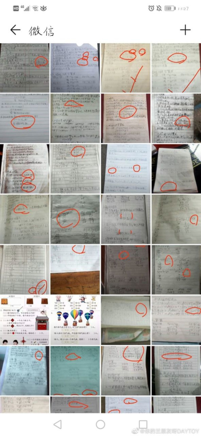 有老师晒出了自己的相册截图,全部都是批改学生作业的截图,他表示,微信批改作业太难了,感觉眼睛要瞎了。