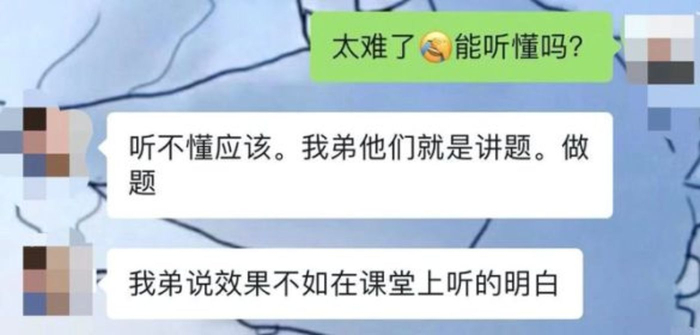 还有学生表示,上网课又听不懂的地方还不敢问老师,害怕因为问题太多老师不给讲,一次不问就会往后拖,就全都不会了。