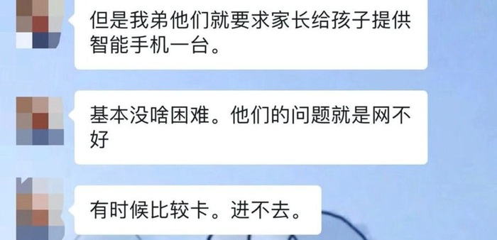 小郑称,学校要求家长给孩子配备一台智能手机,以便学生学习网课。但是上网课存在网络问题,有时候网很卡,根本进不去。