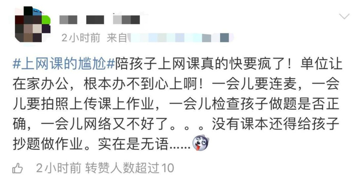 很多家长都在网上吐槽,陪孩子上网课快要疯了,单位让在家办公,但孩子还要在线学习,一会要连麦,一会要拍照上传作业,一会检查孩子做题是否正确,一会网又不好了.....实在是无语。