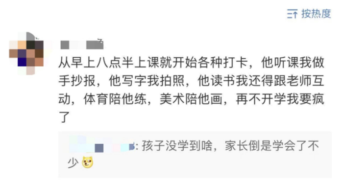 自从孩子学习网课以后,家长就陪着忙活起来了,帮打卡,陪做手抄报、拍照、练体育、练美术,还要和老师互动。