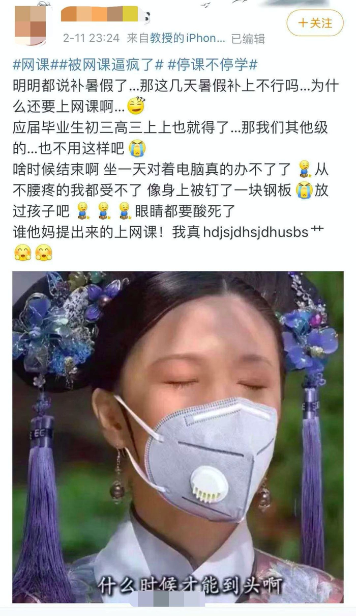 目前,有很多学生表示,自己的学校已经开授网课好几天了,根本拦不住。