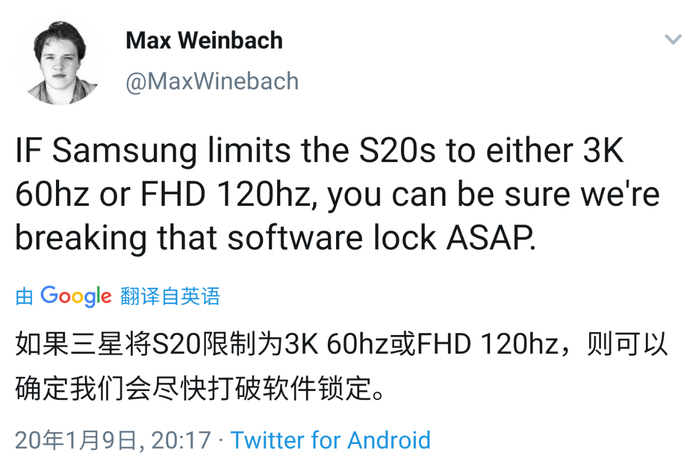 另外,在三星S20系列发布之前就有消息说三星不会同时开放这两个选项,对此XDA的程序员表示,三星只要敢不开放,他们就敢破解。由此可见即便三星官方不开放这项功能,迟早会被程序员们破解。如果让你在续航和流畅之间选择你会选哪一个呢?