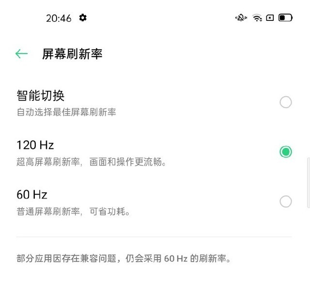另一张截图也也曝光了OPPO Find X2搭载了120Hz高刷新率屏幕,同样支持120Hz与60Hz显示模式的手动切换与智能切换。据有关消息曝光,OPPO Find X2搭载的为定制的120Hz+2k屏幕,其120Hz刷新率为原生支持,并非对“屏幕”进行超频。