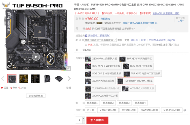 这里首先为A饭们推荐享有“B450M板皇”之称的TUFB450M-PROGAMING电竞主板。该款主板配置强悍,做工精湛、质量可靠,广受玩家赞誉。现在京东PLUS会员价仅售599元,有需求的玩家现在可以下单。购买链接:https://item.jd.com/100001749041.html