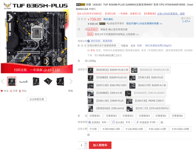 偏爱Intel平台的玩家可以选择有着高性价比的华硕TUFB365M-PLUS GAMING主板。该主板不仅供电进行了强化升级,且有兼容性更全面,支持Win7/Win10系统。,搭配第九代Intel酷睿处理器可带来优异的性能。目前京东PLUS会员价到手仅599元,需要的玩家抓紧下单了。购买链接:https://item.jd.com/100005694456.html