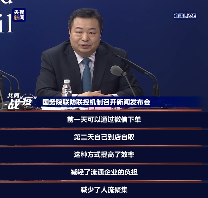 近日,国务院联防联控机制召开新闻发布会,介绍疫情防控中重要生活物资生产保供有关情况。会上,国务院商务部市场运行司副司长王斌向全国市民发出倡议:大家尽量少出门,生鲜物资可以在微信下单购买。
