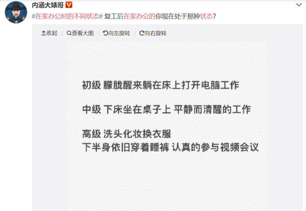 面临全新工作周,如果情况允许,我会毫不犹豫选择返岗复工!但小编下周继续在家……