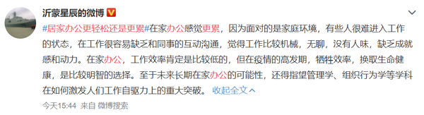 在我看来,选择在家办公是一种习惯性个人态度倾斜。虽然我们都在工作,但相较公司上班,却失去了时间观念与紧迫感。以往,我都会格外珍惜工作的每一分钟,因为不想拖延下班时间。但现在我经常会想到的却是“才几点几点,不着急”,于是时间就这么过去了。有句话说得好,只要你现在低头看手机,那就是一眼万年。