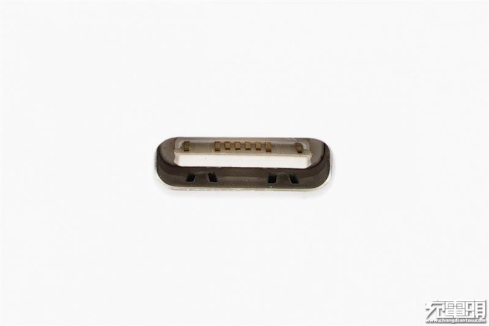 微距摄像头拍摄USB-C输出口母座,白色舌片非满PIN设计,母座与壳体开模位置定位精准,插拔手感顺畅。