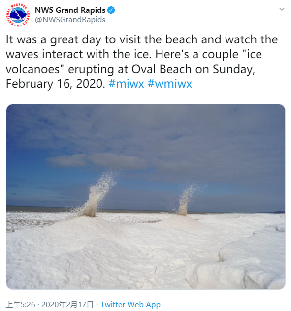 据外媒CNET报道,人们未来可能无需前往矮行星谷神星体验冰火山,因为地球上就拥有这种现象的独特版本。美国国家气象局(NWS)密歇根州大溪城分部分享了从密歇根湖喷涌而出的“冰火山”的壮观景色。该机构发推文称: “这是参观沙滩并观看湖浪与冰层相互作用的美好一天,” 并附上一张奇异的“火山喷发”照片。