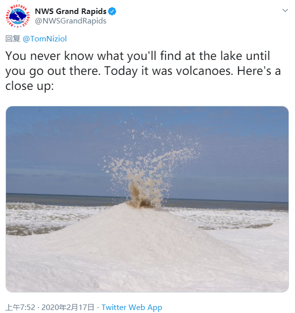 原标题:寒冷的密歇根湖出现怪异的“冰火山” 来源:cnBeta.COM