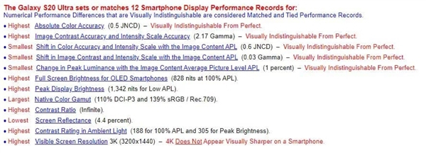 三星Galaxy S20 Ultra屏幕素质测试:色准、色域、亮度等创12项世界纪录