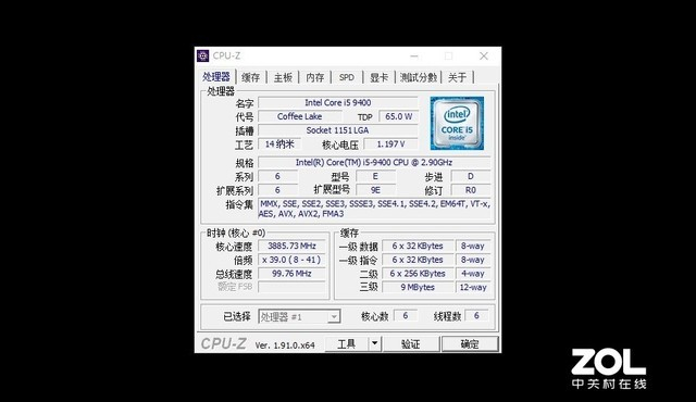 超级战神GX9搭载了一颗英特尔酷睿i5 9400处理器,基于14nm制程工艺设计,主频2.9GHz,睿频4.1GHz,三级缓存9MB,是一颗6核6线程桌面级处理器。