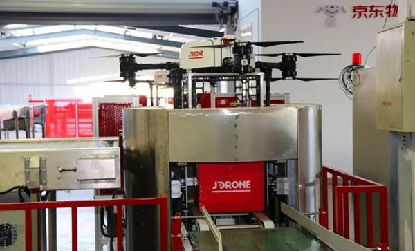 京东的无人机在日常配送中,所有配送航线都是事先勘察好的固定航线,由配送站装好货物以后(根据货物体积和重量,一般一个架次配送5到6单货,最多的时候能到十几单),直接飞到村庄固定的收货点,无人机在收货点降低高度到距离地面30厘米时抛下货物后自动返航,再由收货点的专人负责将收到的货物分发到用户手中。