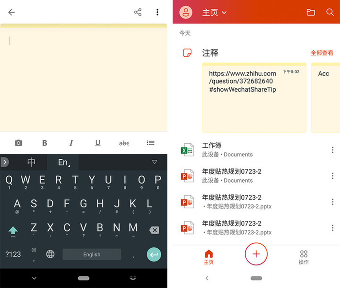 细数起来,《Office》集成的不是止是办公三件套,例如前面提到的图像文本提取和扫描 PDF 源自微软的另一款实用工具《Office Lens》,笔记的功能则来自 Windows 10 上的桌面便签,用微软账号登陆《Office》后,还可将电脑上的便签内容同步至手机的「注释」类目下。