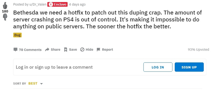 《辐射76》玩家利用建筑模式让服务器崩溃以复制物品