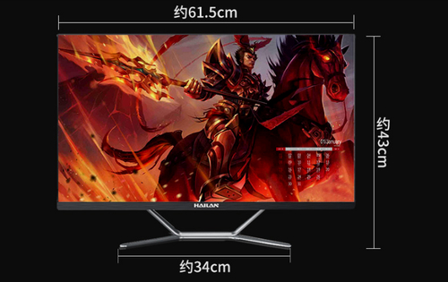 海兰给这款G700一体机采用了轻薄工艺打造,机身线条棱角分明,满满的硬核电竞风。机身厚度60mm,算上支架,整机占用的空间跟一般电脑显示器差不多,相比较台式机能够节省约70%的空间,同时这台一体机仅需一根电源线即可使用,免除线材的繁琐。