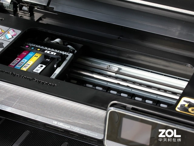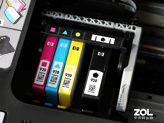 打印头固定以后,再根据提示,一对一的放入CMYK等不同颜色的墨盒,一般来说分体式墨盒的安装都是压入、插入式的,比较简单。打印头的寿命周期比较长,所以更换的频率很低。