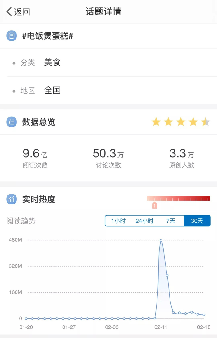 微博话题“电饭煲蛋糕”热度情况来源 / 燃财经