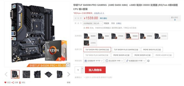我们使用的是华硕TUF B450M-PRO GAMING主板来搭配者款处理器,售价1559元,这款主板有很高的潜力,供电能力很强,而且B450和3500X都支持超频,你还可以进一步的增强性能。