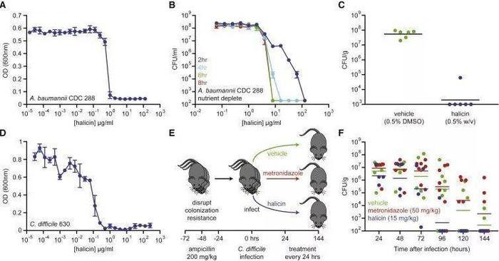 为了在活体动物身上测试 halicin 的有效性,研究人员用它来治疗感染了鲍曼尼氏杆菌的老鼠,这种细菌此前已经感染了许多驻扎在伊拉克和阿富汗的美军士兵,而且鲍曼尼氏杆菌对所有已知的抗生素都有耐药性,但使用 halicin 的治疗后,细菌感染在 24 小时内完全消失。