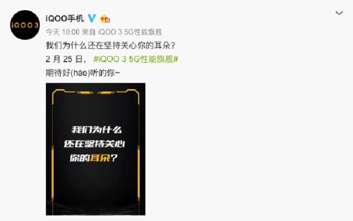 原标题:iQOO 3保留3.5mm耳机孔,配独立DAC解码HiFi体验