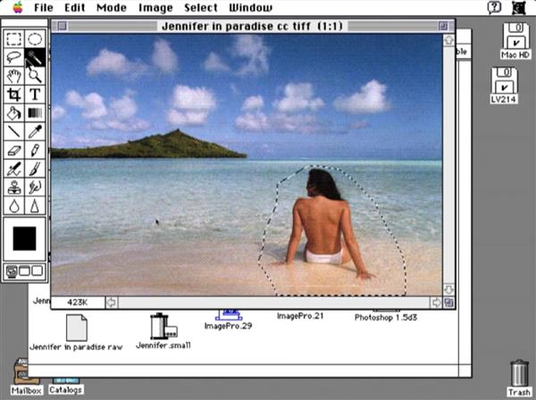 在Photoshop 20周年时,Adobe放出了John Knoll为Photoshop拍摄的第一支demo视频,处理的是自己老婆的照片。视频中可以看到,Photoshop的很多界面设计直到现在也没有发生大的改变。